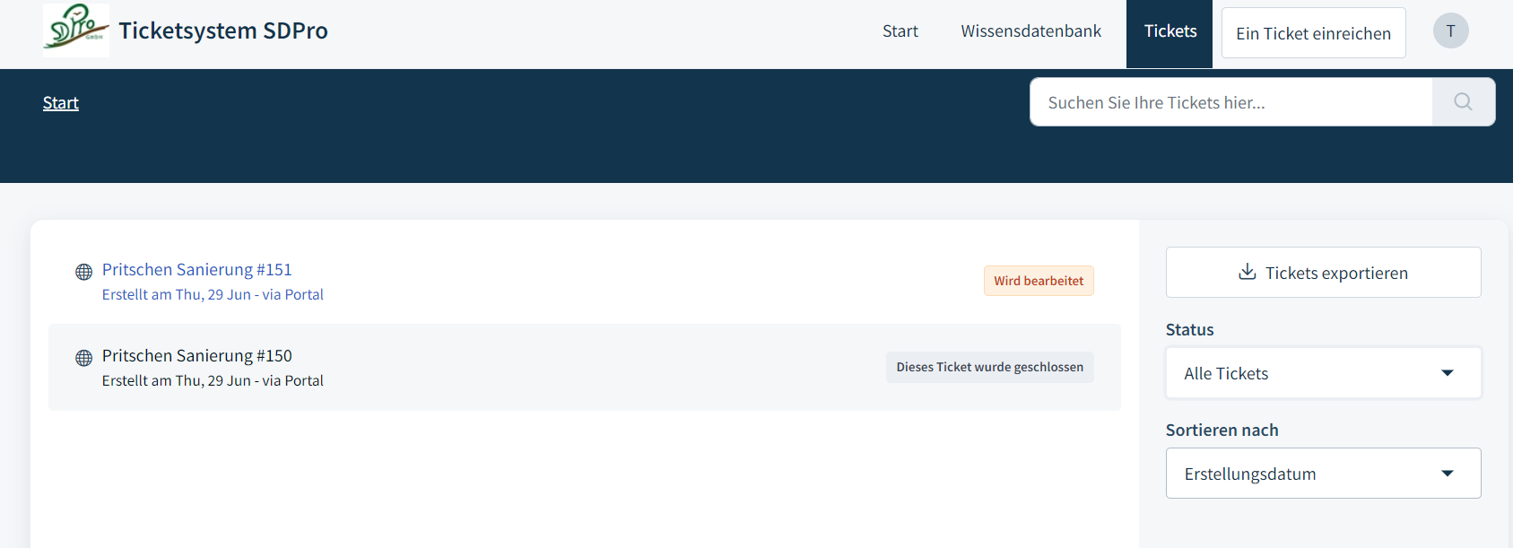 Sobald du das Ticket abschickst, bekommst du eine standardisierte Antwortmail mit einer Ticketnummer. Den Status deines Tickets kannst Du jederzeit über den Link oder unter „Alle Tickets“ anschauen.